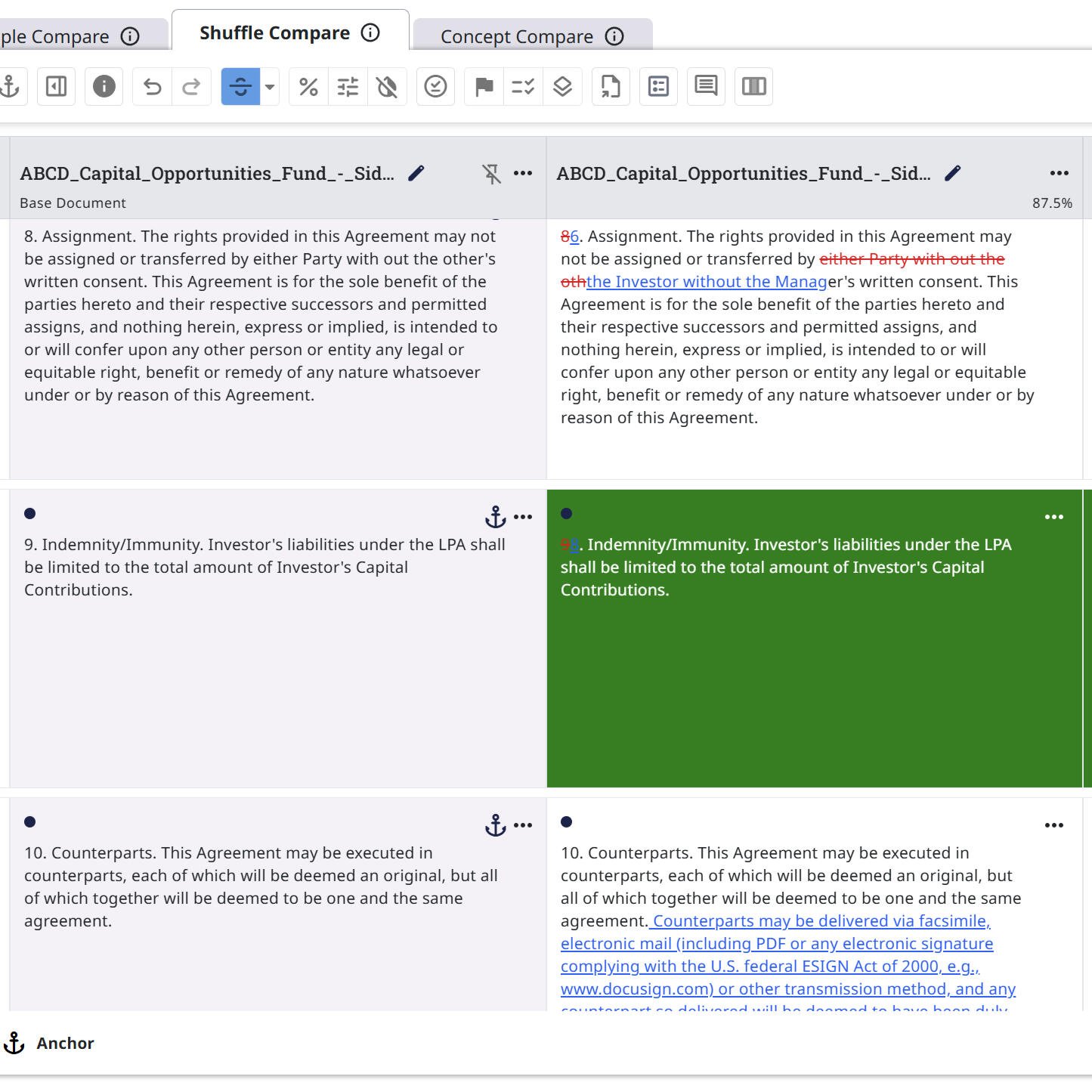 Upload your election form and side letter to see exactly what's different.Side-by-side comparisons show how each election affects your fees, rights, and reporting. No more comparing PDFs by hand.